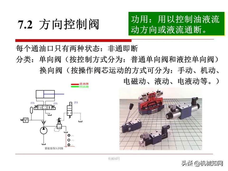 液压阀是对液压系统所需的液体压力、流动方向、流量大小进行控制调节,以满足执行元件克服外部载荷、改变运动方向和运动速度的要求。